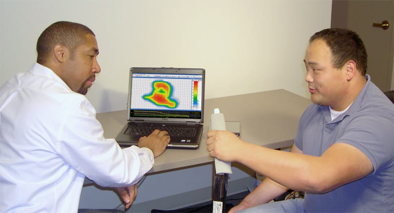 Tactilus® Technology: Tactilus® is a matrix based tactile surface sensor. Essentially an “electronic skin” that records and interprets pressure distribution and magnitude between any two contacting or mating surfaces and assimilates that data collected into a powerful Windows® based tool kit. Each Tactilus® sensor is carefully assembled to exacting tolerances and individually calibrated and serialized. The architectural philosophy of Tactilus® is modular allowing for portability, easy expansion, and simultaneous data collection of up to 4 discrete sensor pads. Tactilus® employs sophisticated mathematical algorithms that intelligently separate signal from noise, and advanced electronic shielding techniques to maximize environmental immunity to electromagnetic noise, temperature and humidity. Our proprietary sensor design ensures the most robust sensor in the industry – an investment that will sustain thousands of uses.